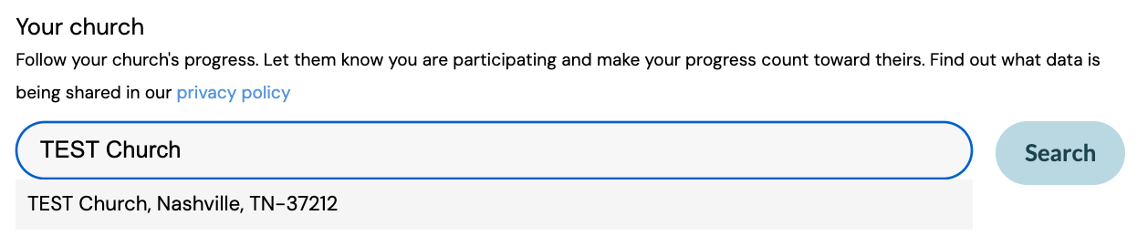 Note: Your Church may not have signed up as a Bless Partner yet. Go ahead and enter your Church information and when they do become a Bless Partner, your account will connect automatically. Also, it is important to know that by connecting to your church, the church administrators will be able to see some of your information.