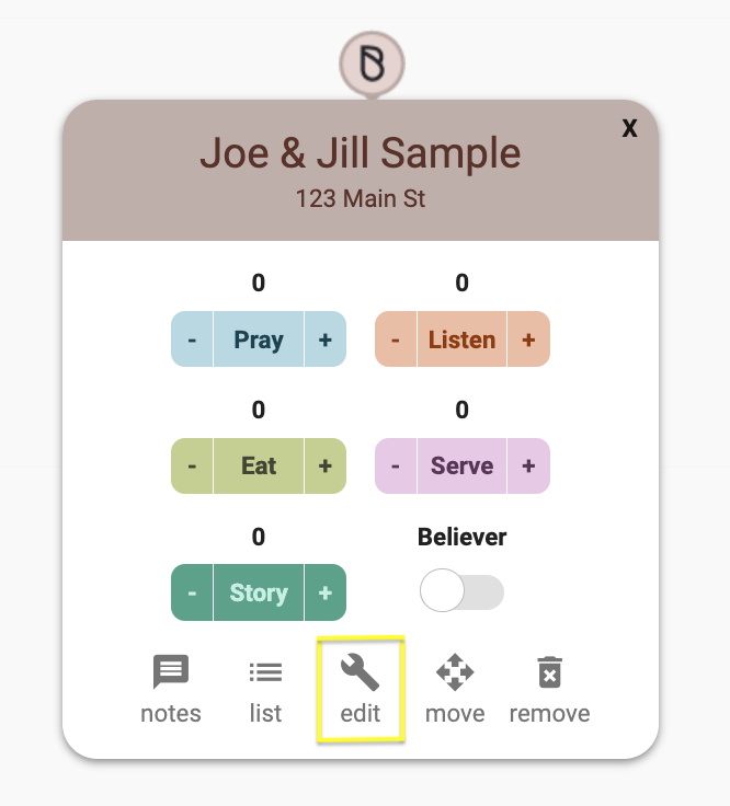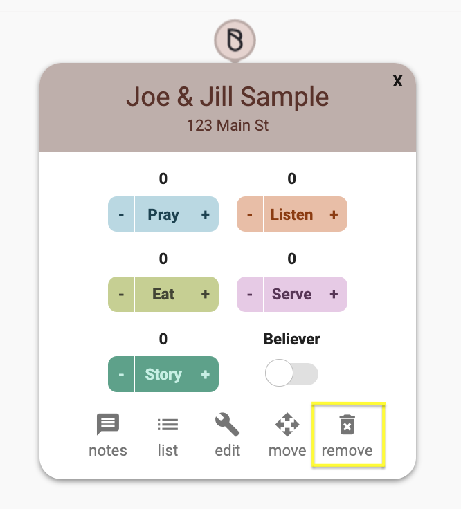 - Click the neighbor icon of the home that you want to remove or edit to open the infobox.
